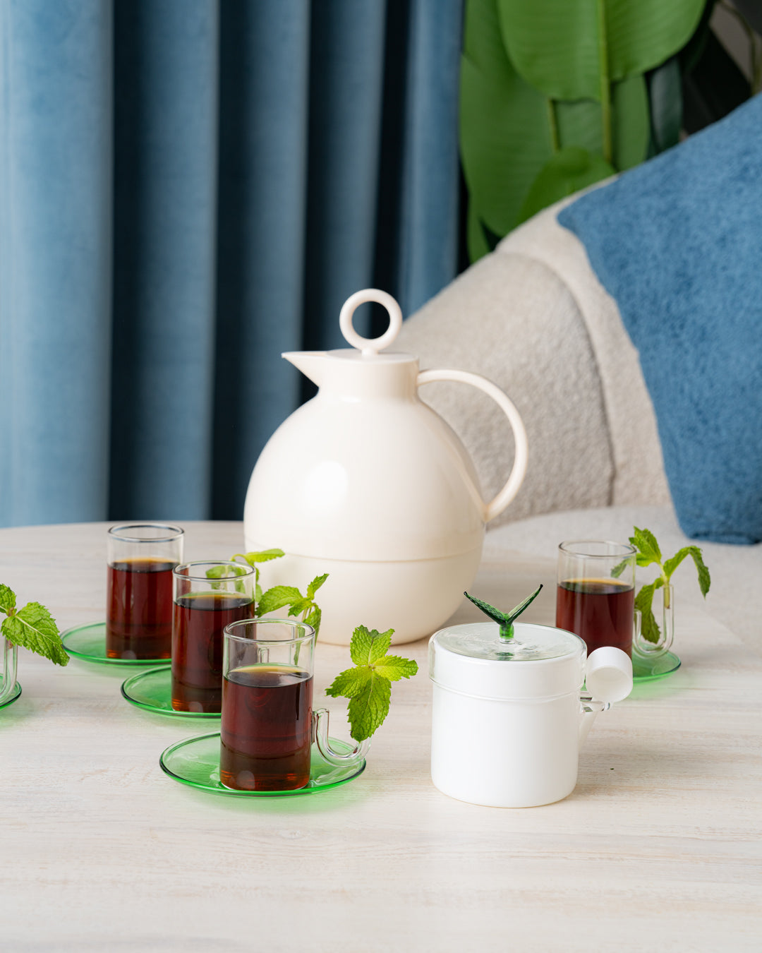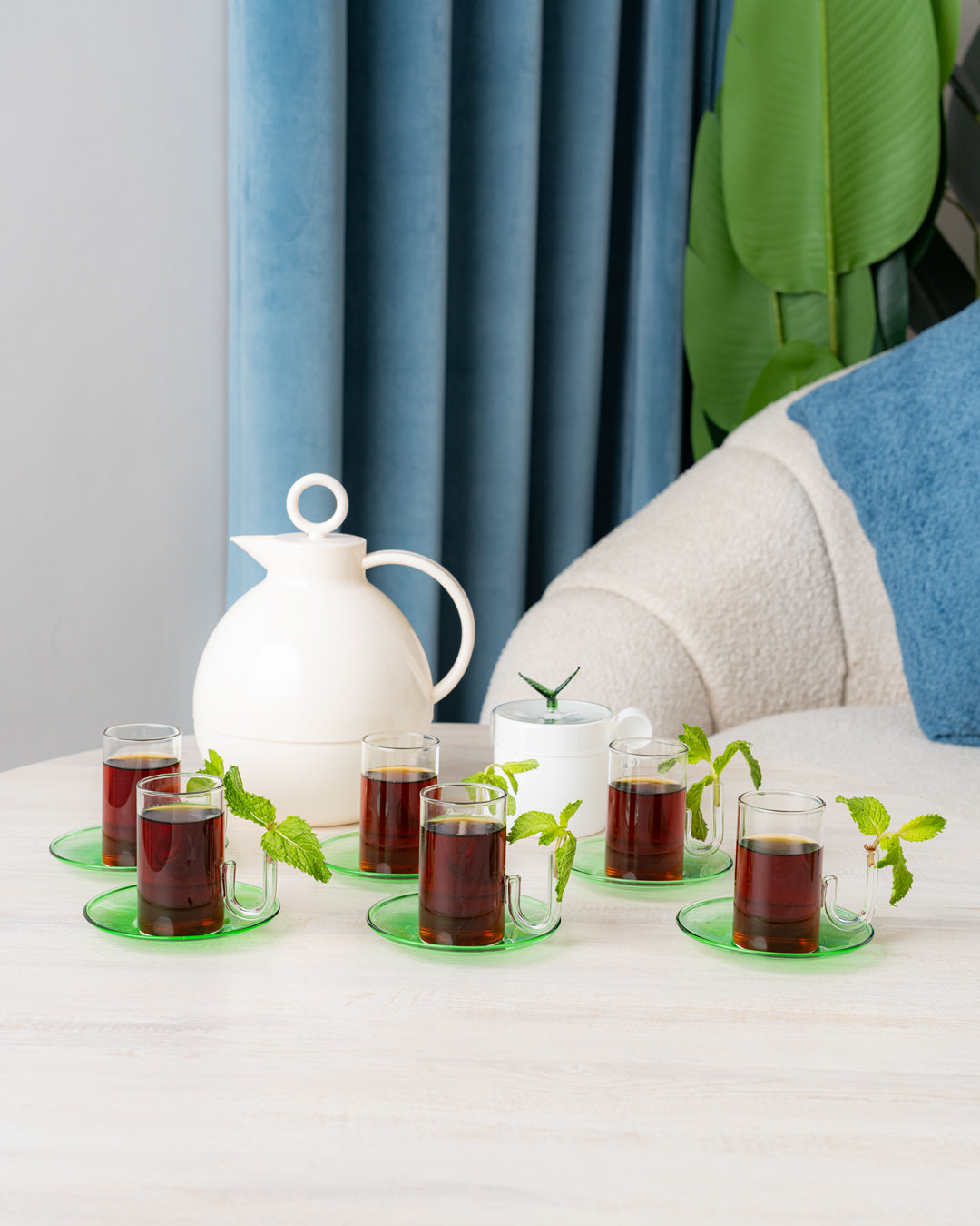 طقم استكانات بمقبض لوضع النعنع